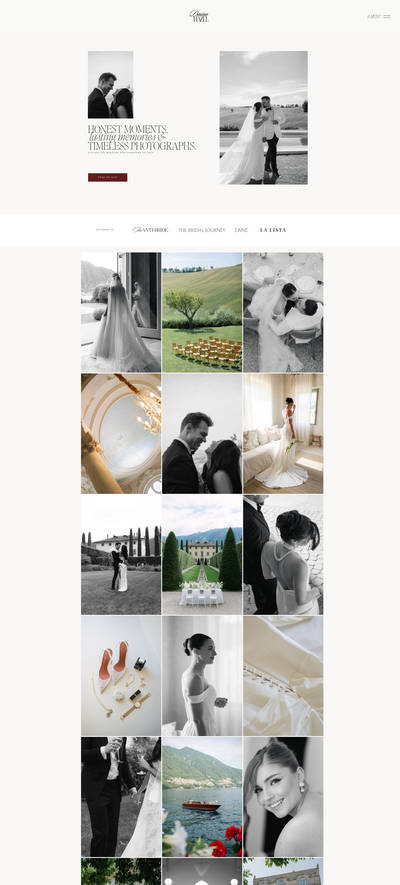 Soft tones, elegant type, and a refined layout—Positano is perfect for natural light wedding photographers who love a clean, editorial feel.