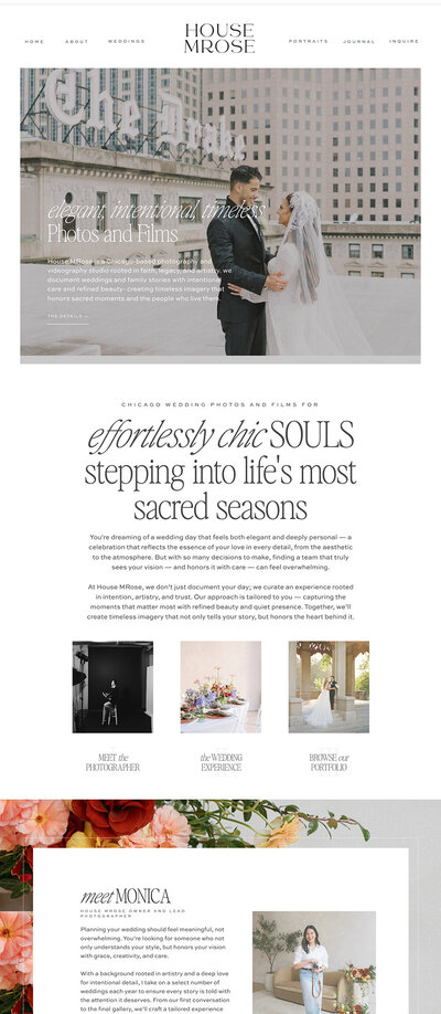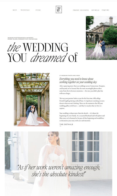A polished, conversion-focused design for wedding photographers and creatives to showcase their services, grow their email list, and connect with dream clients—effortlessly.